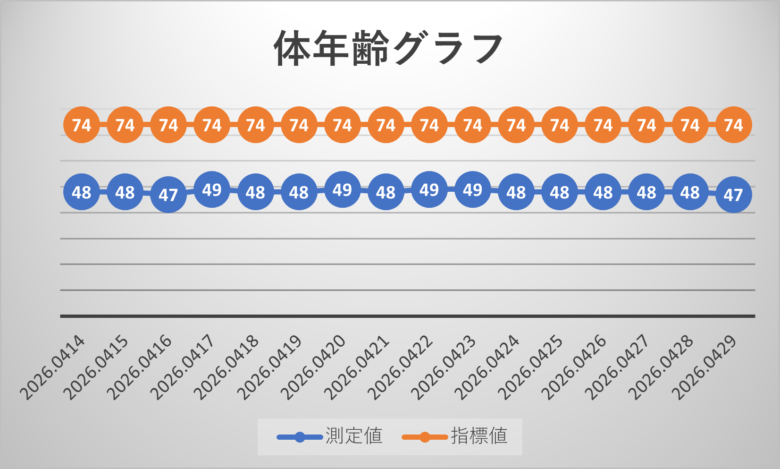 体組成計の機能の体年齢データをグラフ化したものです。