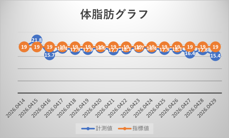 2026年4月12日~29日の体組成計データをグラフ化したものです。